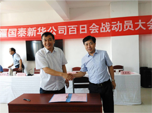 8月12日,应新疆国泰新华矿业股份有限公司邀请,公司总经理、党委副书记张雪铭赴新疆国泰总承包项目现场参加项目竣工投产前“百日会战”动员大会,并代表我司签署《“百日会战”目标责任书》。