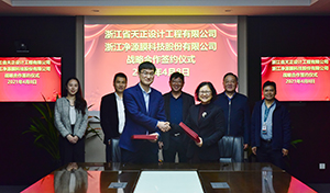 近日,华体网页版登录界面与浙江净源膜科技股份有限公司共同签署战略合作协议。双方基于“优势互补、资源共享、合作共赢”的原则,就高强纤维复合PTFE膜产品在工程项目中的应用达成一致。