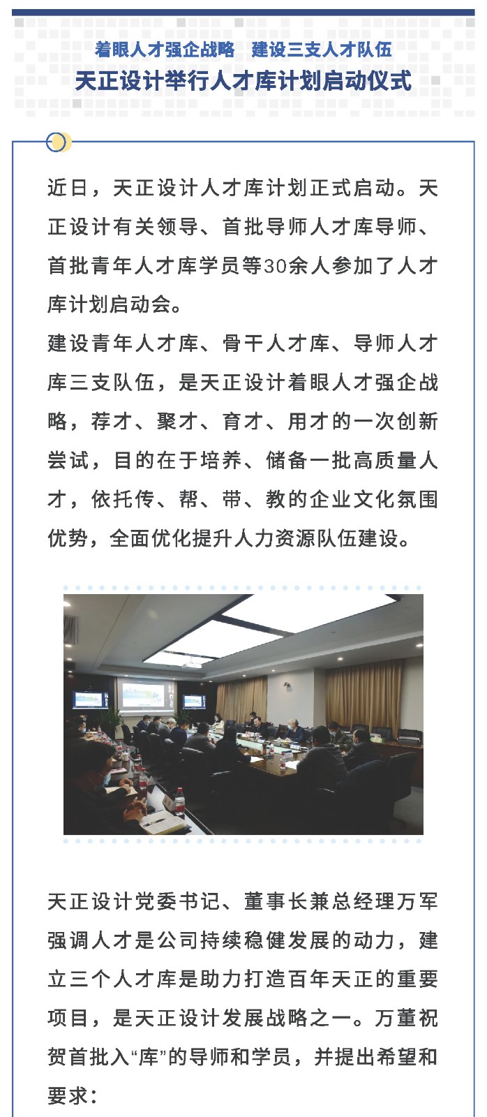 着眼人才强企战略 建设三支人才队伍——天正设计举行人才库计划启动仪式